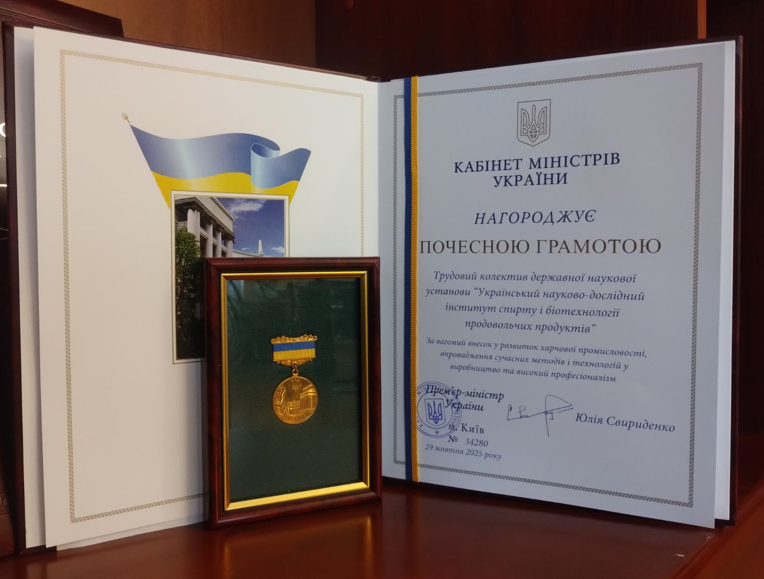 Трудовий колектив ДНУ «УкрНДІспиртбіопрод» нагороджено Почесною Грамотою Кабінету Міністрів України:за вагомий внесок у розвиток харчової промисловості, впровадження сучасних методів і технологій у виробництво та високий професіоналізм ( лист Мінекономіки від 20 жовтня 2025 р.№2202-05/70857-01). Висловлюємо щиру подяку за високу відзнаку!